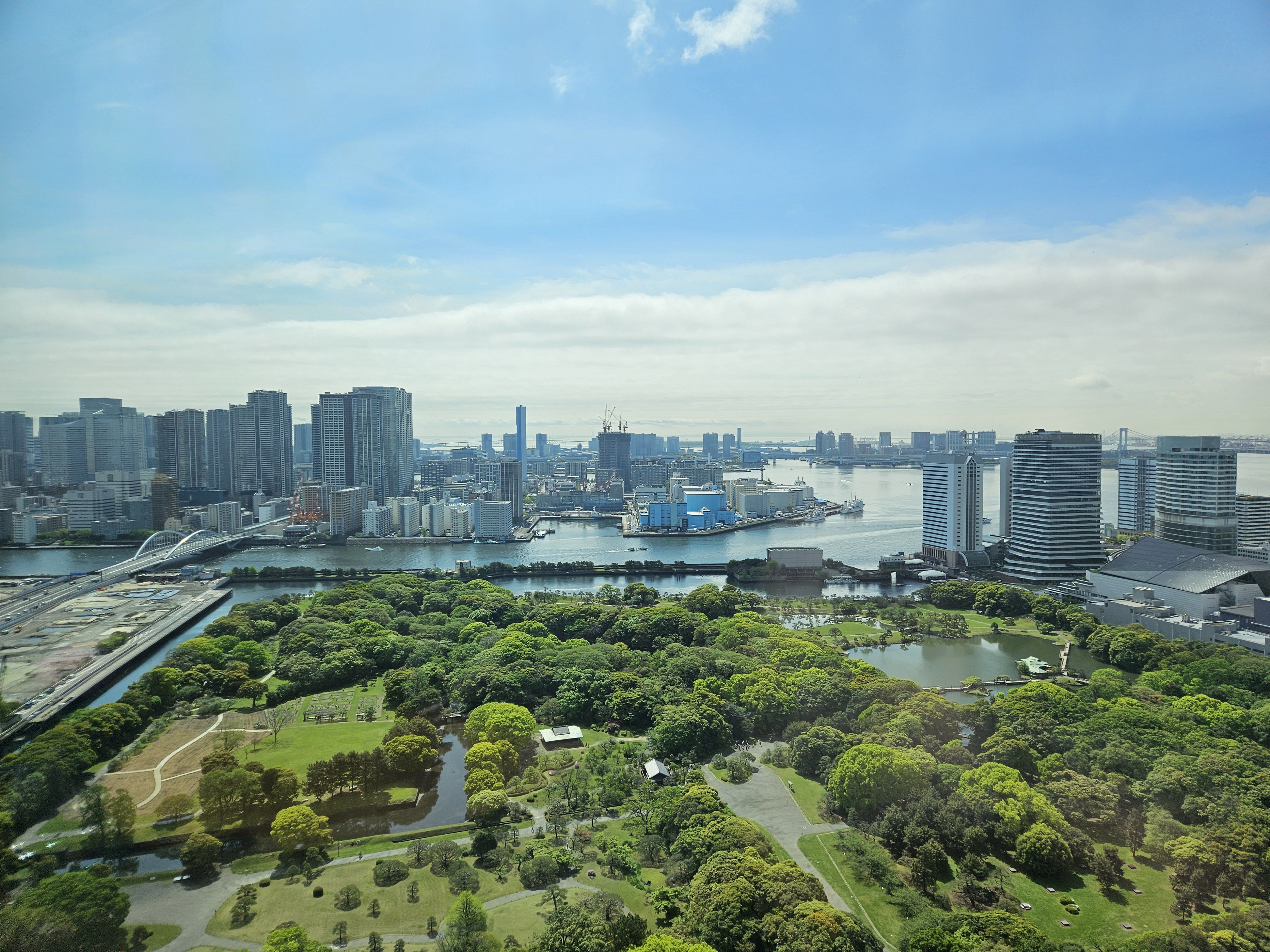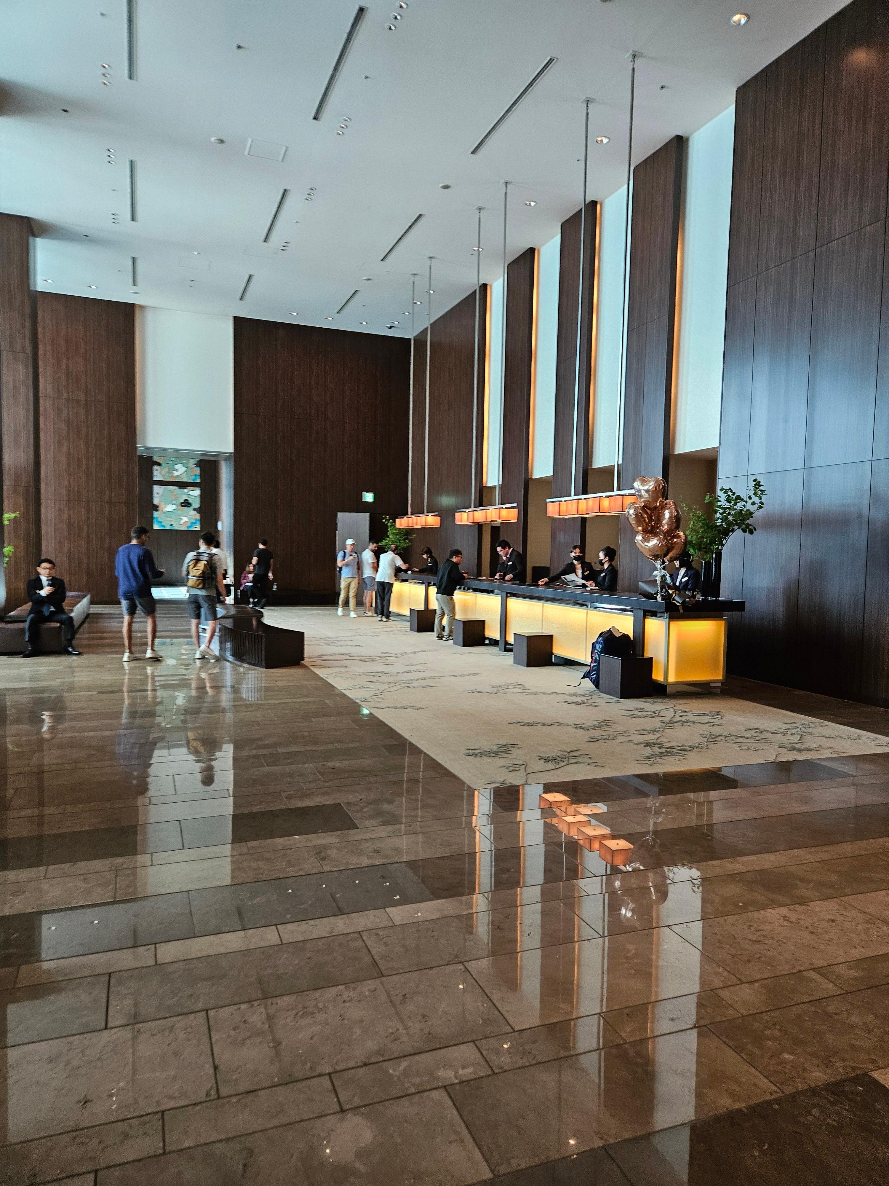 처음 호텔에 도착했을 땐, 도보 이동으로 조금 고생을 했지만 로비에 들어서는 순간 넓고 고급스러운 분위기에 감탄이 절로 나왔어요. 28층에 위치한 로비에서 보는 풍경도 정말 멋졌고, 음악이 흘러나오는 분위기는 마치 영화 속 한 장면 같았죠. 특히 엘리베이터를 타고 올라가면서 점점 펼쳐지는 도쿄 시내 전경은 정말 인상 깊었어요.